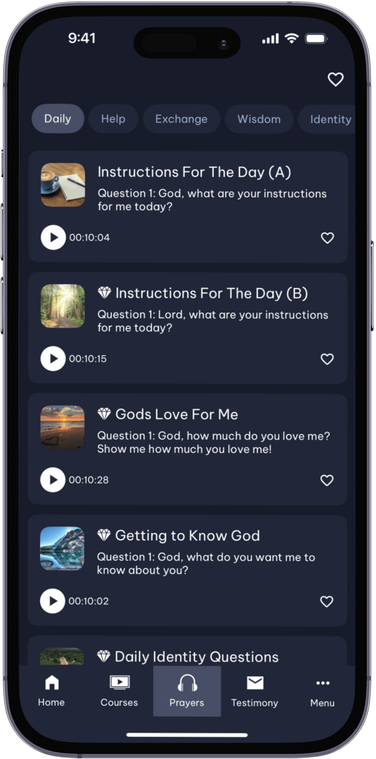 Audio listening prayer sessions to guide you in personal conversations with God.